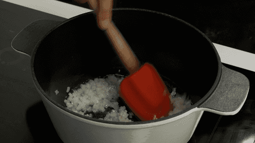 Измельчить лук и обжарить его на растительном масле в толстостенной кастрюле или казане до золотистого цвета.