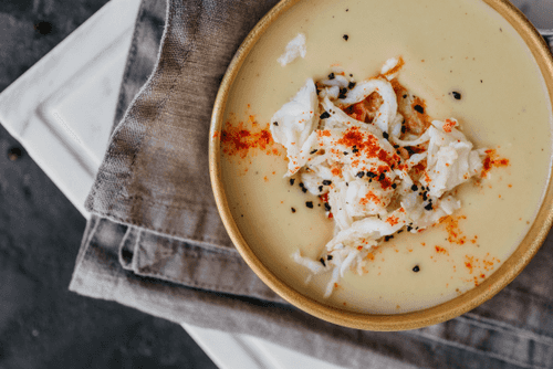 Картофельное пюре с крабом и соусом биск