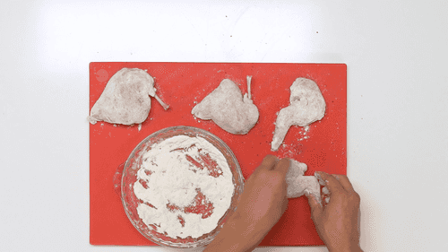 Обсушить мясо бумажными полотенцами, посолить, поперчить и обвалять в муке.