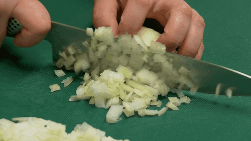 Измельчить лук и обжарить его на растительном масле до золотистого цвета.