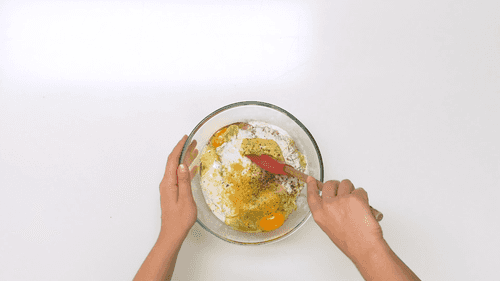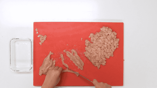 Куриное филе нарезать мелкими кубиками. Смешать с кабачками и обжаренным луком, добавить яйца, муку горчицу, сметану, лимонную цедру, соль и перец.