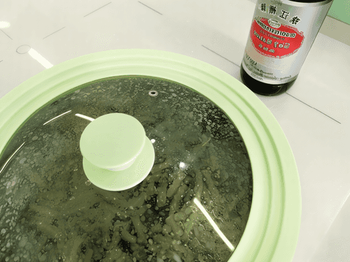 Добавить в фасоль соевый соус и уменьшить огонь.
