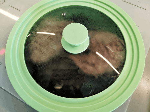 Закрыть крышку, еще немного уменьшить огонь и готовить не менее 12 минут.