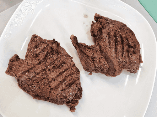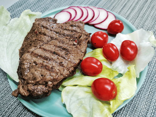 Как только стейк станет готовым, выложить его на тарелку. Взять сливочное масло и смазать им готовое мясо с обеих сторон.