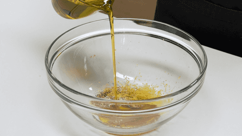 В большой миске смешать все специи с оливковым маслом.