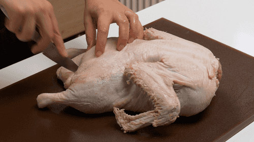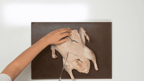 Надрезать кожу на грудке ромбовидным узором, не доходя до мяса.