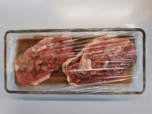 Накрыть блюдо пищевой пленкой и оставить мариноваться в течение 30 минут.