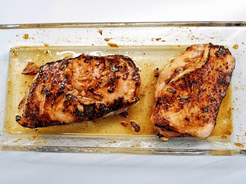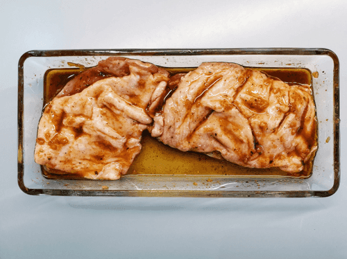Выложить грудку обратно в огнеупорное блюдо, полив маринадом.