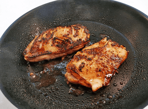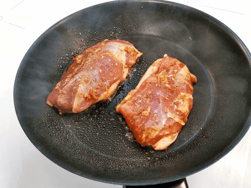Отправить грудку в раскаленную сковородку шкуркой вниз и жарить до румянца.