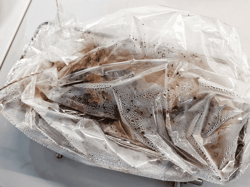 Поместить блюдо в рукав для запекания, закрепить концы и проделать несколько дырочек зубочисткой. Отправить в духовку.