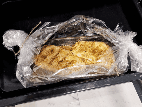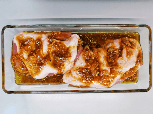 Вылить маринад к грудке и постараться расположить его в том числе под шкуркой.