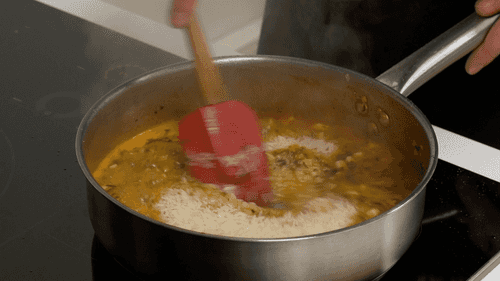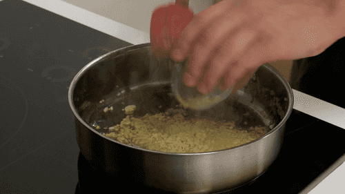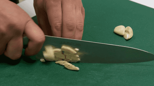Добавить чеснок, перемешать в течение 30 секунд до появления яркого аромата.