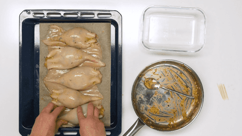 Выложить кальмары на противень, влить стакан воды и отправить в духовку, разогретую до 170 градусов, на час.