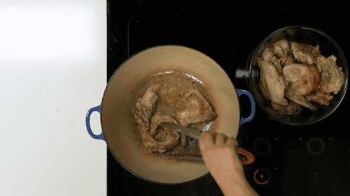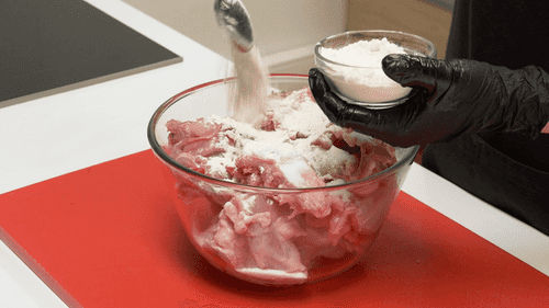 Разделать кролика, посолить и перемешать с мукой, чтобы подсушить мясо.