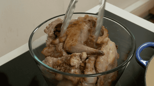 Готовое мясо переложить в чистую посуду.