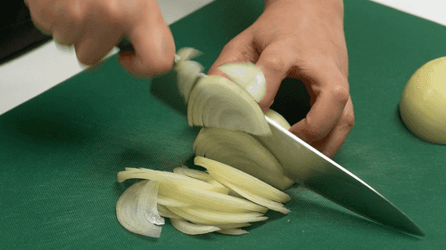 Нарезать лук соломкой.