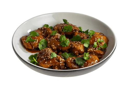 Куриные бедра в азиатской глазури – это гармония вкусов Востока, где сладость коричневого сахара, терпкость соевого соуса и пикантность имбиря с чесноком создают насыщенный и соблазнительный соус. Это блюдо корнями уходит в паназиатскую кухню, сочетающую японские, китайские и тайские кулинарные традиции. Маринад придает курице карамелизованный оттенок, а кунжут и кинза завершают композицию свежими и хрустящими нотами. Подавать лучше горячим, чтобы полностью раскрыть всю глубину вкуса. Отличный выбор для ужина, который впечатлит своим ароматом и идеальным балансом сладкого, соленого и острого. Подавайте с рисом или лапшой, чтобы соус обволакивал гарнир, усиливая наслаждение каждым кусочком.