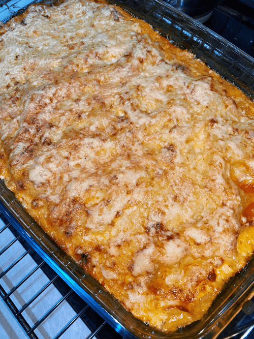 Последний слой листов промазать соусом бешамель и все засыпать сыром. Дать постоять 7 минут, пока разогревается духовка. Ее нужно поставить на 180 градусов.