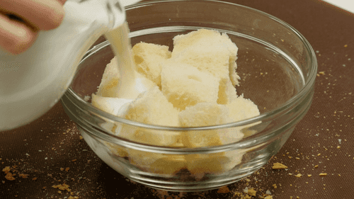 С хлеба срезать корки и замочить его в молоке.