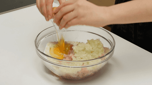 Добавить к фаршу яйцо, посолить и поперчить по вкусу.