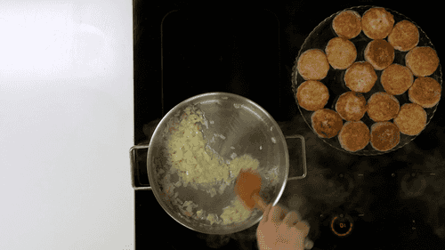 В сковороде разогреть растительное масло и обжарить биточки со всех сторон до румяной корочки. Переложить их в чистую посуду.