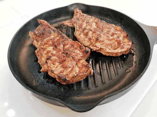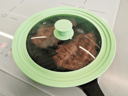 Накрыть мясо крышкой, убавить огонь и готовить до нужной степени прожарки.