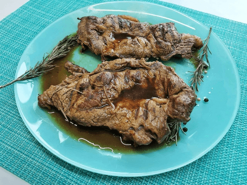 Стейк «Топ-блейд» с розмарином – это истинное наслаждение для любителей сочного мяса. Этот рецепт пришел из британской кухни, где ценят глубокий, насыщенный вкус говядины и гармоничное сочетание специй. Топ-блейд, известный своей нежностью, приобретает аппетитную корочку благодаря обжарке на раскаленной сковороде. Черный перец и морская соль подчеркивают естественный вкус мяса, а сливочное масло делает его еще более мягким и сочным. Веточки свежего розмарина добавляют тонкий древесный аромат, который раскрывается во время завершающего этапа приготовления. После кратковременного отдыха в фольге стейк впитывает соки и специи, становясь идеальным вариантом для праздничного ужина или уютного домашнего вечера.