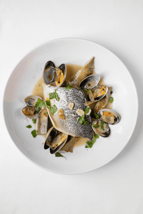 Филе сибаса с артишоками и вонголе