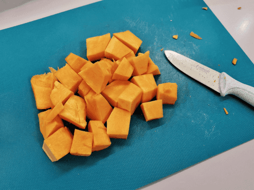 Залить тыкву водой, довести до кипения, убавить огонь до среднего и варить 10 минут.