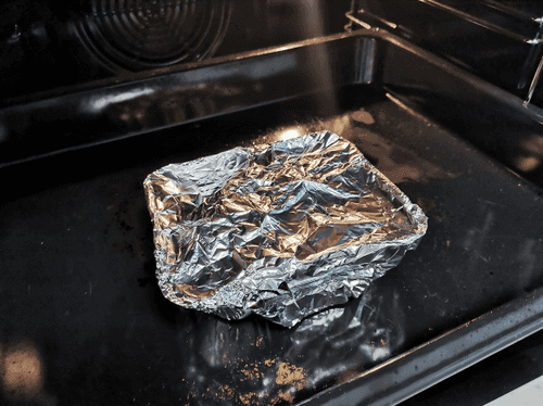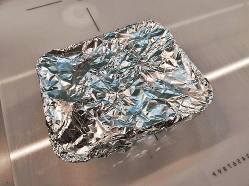 Накрыть сверху фольгой — глянцевой стороной вниз.