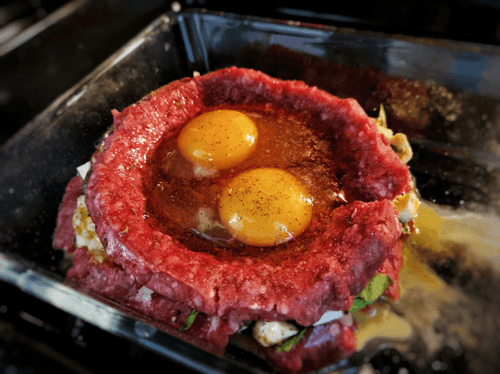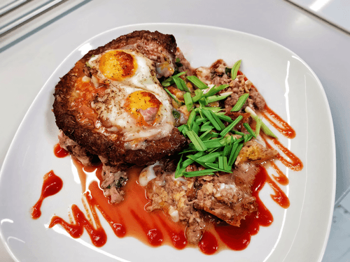 Голливудский бифштекс — это истинное воплощение кулинарного гламура, сочетающее насыщенный вкус сочного говяжьего фарша с нежностью моцареллы и ароматной свежестью базилика. Это блюдо, вдохновлённое атмосферой роскошных ресторанов Лос-Анджелеса, очаровывает своей презентацией и глубиной вкусовых оттенков. Специи, изысканно подобранные для усиления вкуса, придают бифштексу пикантность, а запечённое яйцо добавляет нежности и визуальной привлекательности. Идеален для тех, кто ищет баланс между насыщенным вкусом и утончённой подачей. Подавайте горячим, дополняя легким салатом или бокалом красного вина, и наслаждайтесь атмосферой звездного ужина.