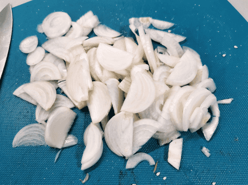 Нарезать лук полукольцами.