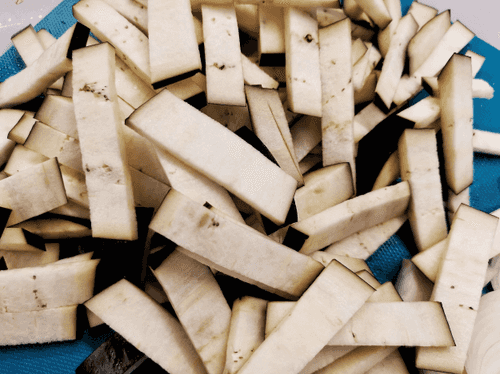 Баклажан нарезать соломкой.