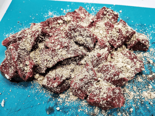 Печень присыпать тыквенной мукой.