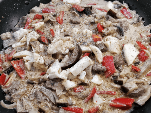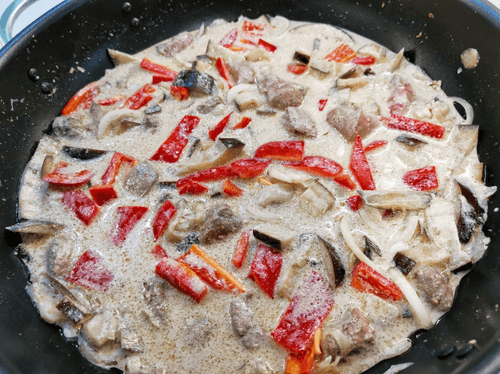 Телячья печень со сметаной и овощами