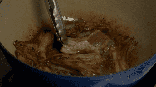 В казане разогреть масло и обжарить все мясо до румяной корочки.
