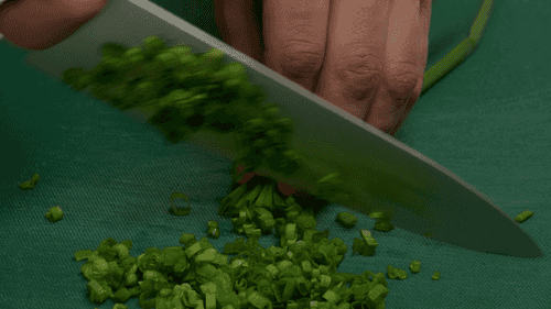 Измельчить зеленый лук.