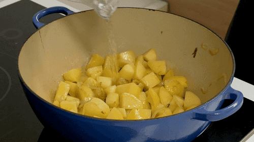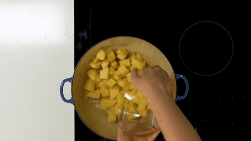 Добавить картофель, перемешать и обжарить в течение 5–10 минут.