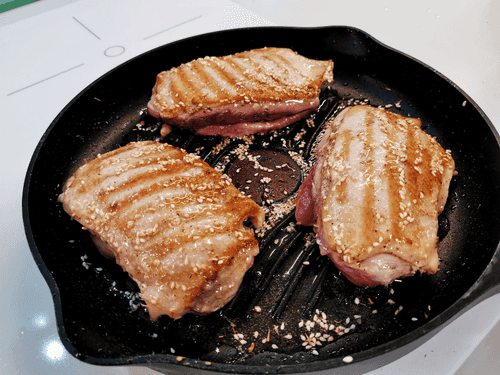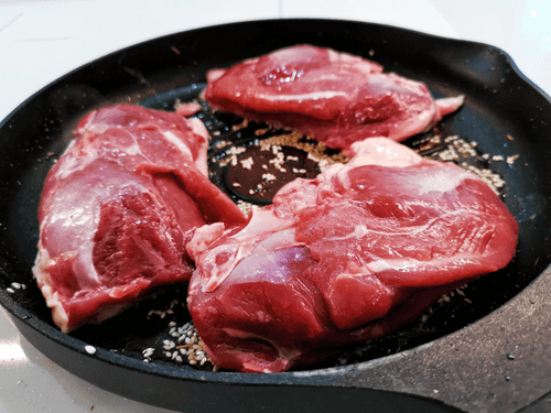 Выложить на раскаленную сковороду филе утки.