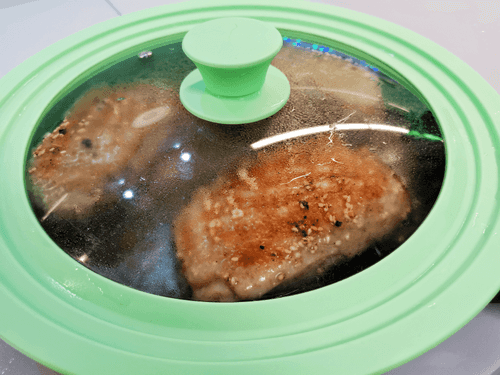Спустя 10 минут перевернуть мясо, затем снова закрыть крышку.