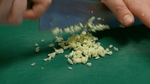 Нарезать зубчики чеснока очень мелко.