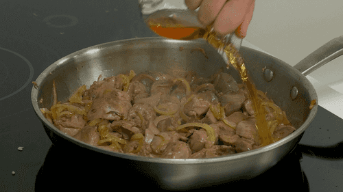 Куриная печень с луком на сковороде