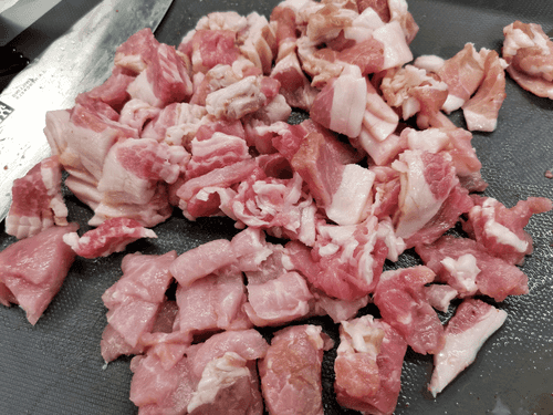 Крупно нарезать бекон.
