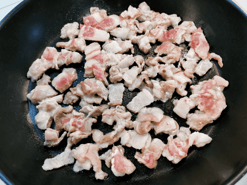 Отправить бекон на сухую раскаленную сковороду и обжарить со всех сторон до румянца.