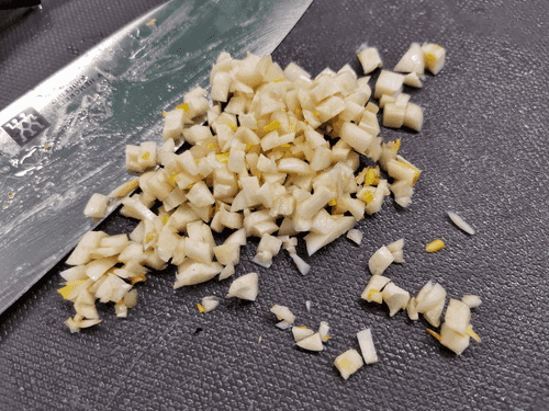 Крупно нарезать чеснок.