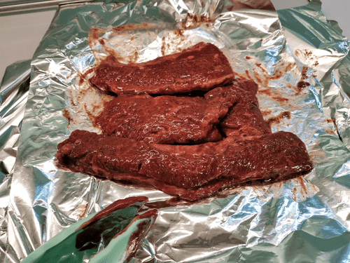 Смазать говядину маринадом.