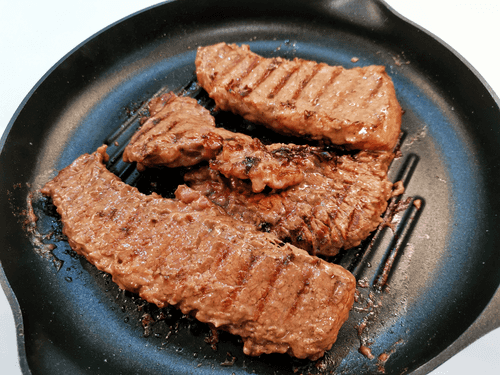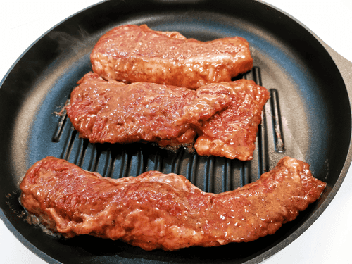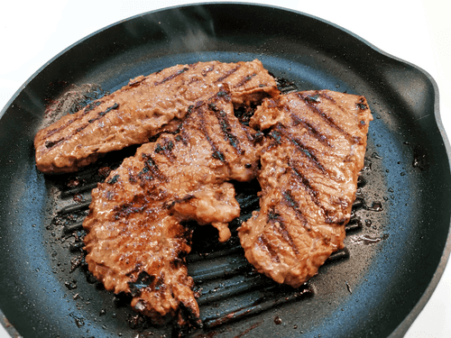 Выложить говядину на раскаленную сковороду-гриль.