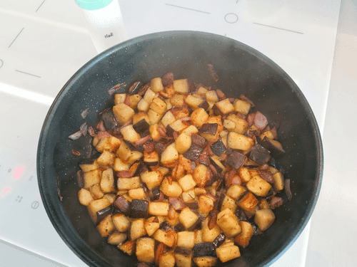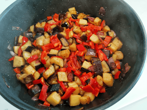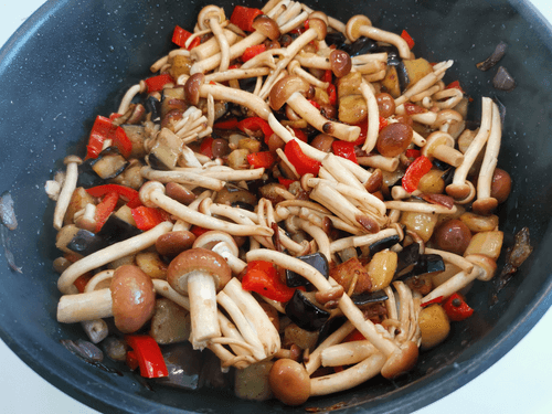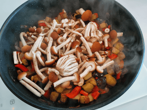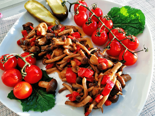 Жареные опята с овощами — это блюдо, которое очаровывает своей простотой и богатством вкусов. Опята, известные своим нежным грибным ароматом, превосходно сочетаются с сладковатым перцем рамиро, сочным баклажаном и пикантным красным луком. В процессе приготовления овощи раскрывают свой вкус, а грибы пропитываются ароматом масла и специй, создавая насыщенную, гармоничную композицию. Исторически блюда с лесными грибами широко распространены в русской и европейской кухне, а их жарка с овощами — классический метод, позволяющий подчеркнуть природные качества ингредиентов. Это блюдо идеально как самостоятельная закуска, так и гарнир к мясным или зерновым блюдам. Подается горячим, с зеленью и свежим хлебом, что делает его особенно уютным и домашним.