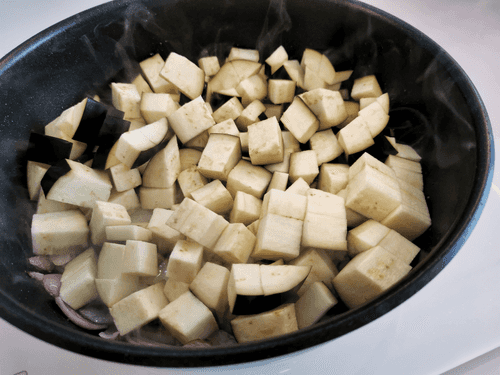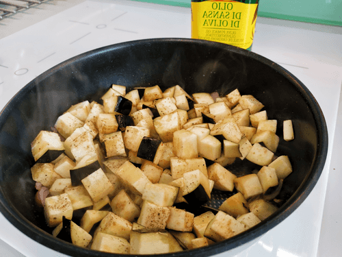 Через 3 минуты снова перемешать и убавить огонь до среднего.
