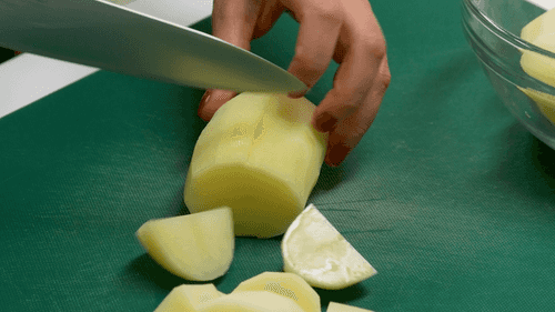 Картофель очистить, крупно нарезать и отварить до мягкости в подсоленной воде.